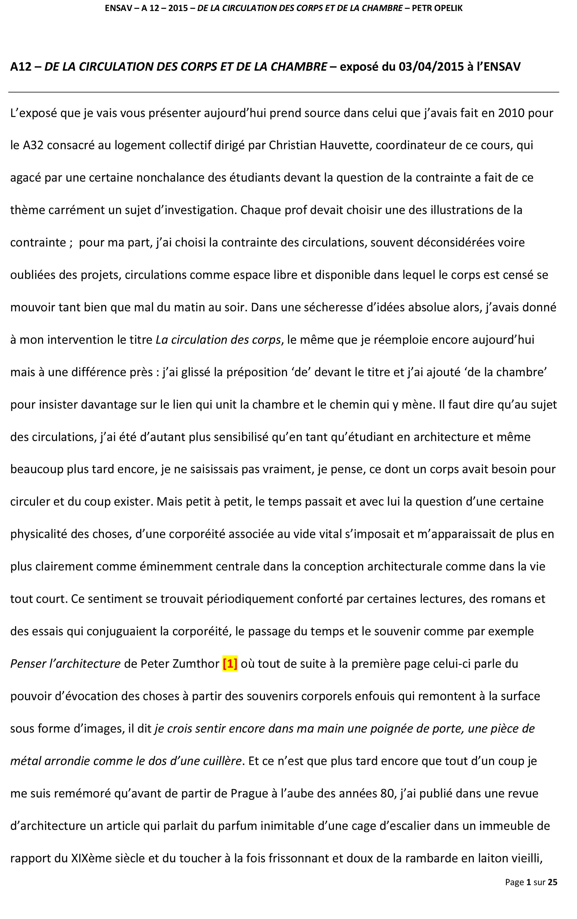 Conférences - 2015 De la circulation des corps et de la chambre ENSAV - Texte